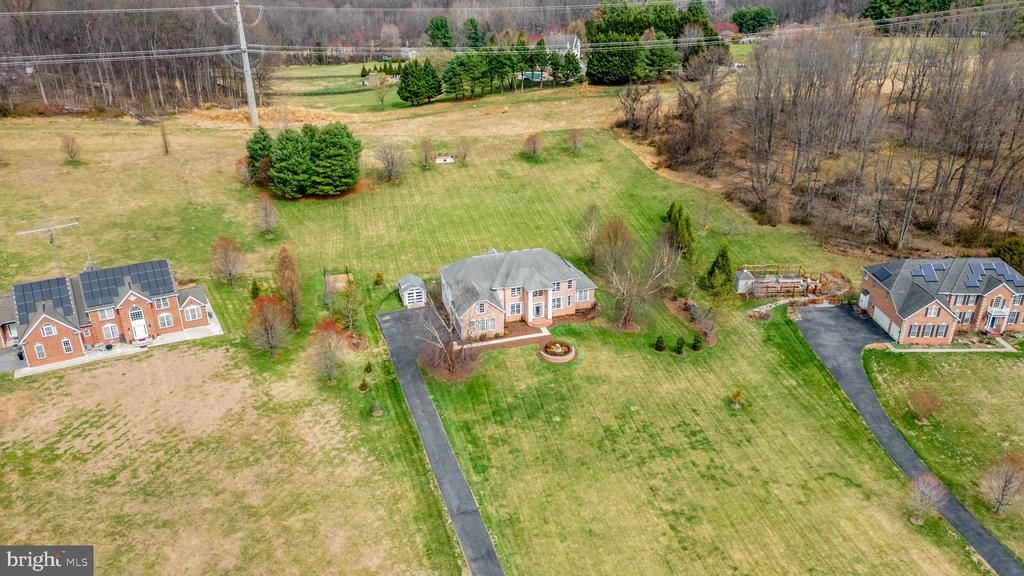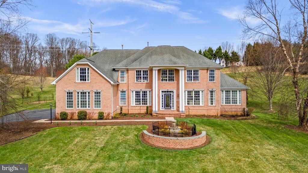 Elegant Colonial residence nestled in prestigious Lime Kiln Valley, lovingly maintained by its original owners and set on a breathtaking 3+ acre homesite with panoramic views. The stately brick façade is complemented by extensive, professional landscaping and a luxurious water feature, creating a truly memorable first impression // Rich hardwood floors flow throughout the traditional yet open layout, enhanced by a warm, neutral palette, airy living spaces, and graceful arched walkways that add timeless architectural character. A grand two-story foyer with classic wainscoting details welcomes you inside, flanked by a formal living room and an elegant dining room featuring chair railing accents. French doors lead to a stunning family room/sunroom highlighted by panoramic windows that frame the picturesque grounds and fill the space with natural light. // The gourmet eat-in kitchen is thoughtfully designed for both everyday living and entertaining, featuring a spacious center island including a pot filler/sink bar seating, stainless steel appliances including double ovens and a French door refrigerator, granite countertops, and a custom real marble backsplash. Crisp white shaker-style cabinetry, a pantry, and a breakfast bar accented by a striking marble feature wall below elevate both the style and functionality of the space. // The impressive two-story family room is defined by elegant columns and anchored by a propane fireplace, with expansive upper and lower windows that create a light-filled, inviting atmosphere. A well-appointed laundry room with access to the attached 3-car garage adds everyday convenience, while a versatile main-level office/flex room is complemented by an adjacent, beautifully finished full bathroom showcasing designer tilework. // Ascend the staircase adorned with iron rod railings to the upper level, where hardwood floors continue throughout. The luxurious primary suite features a cathedral ceiling, a cozy sitting room, two walk-in closets, and a spa-like en-suite bath with a dual sink vanity, a jetted soaking tub, and a private water closet. A secondary bedroom offers its own private bath and walk-in closet, while two additional bedrooms provide generous double closets and share a well-appointed full bath. // The fully finished walk-up lower level offers LVT flooring throughout and is designed with versatility in mind, featuring a spacious recreation area with built-in storage and bench seating, multiple defined zones for entertaining, gaming, or fitness, and a flexible bonus room or den with dual-entry access to a full bathroom. Additional storage space further enhances functionality. // Outdoor living is equally exceptional, with a covered porch with vaulted ceiling, a brick-accented patio, and an expansive yard complete with a hilltop fire pit patio area. Meandering stepping stones lead to the driveway, where an additional detached one-car garage provides added flexibility.